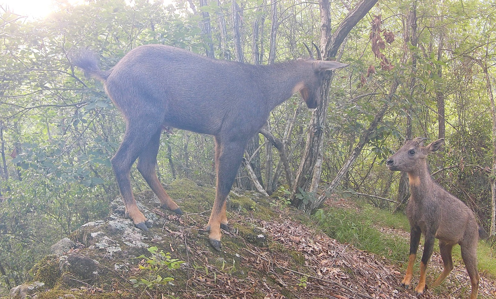 據(jù)了解,中華斑羚對(duì)生態(tài)環(huán)境要求嚴(yán)苛,種群數(shù)量稀少,是珍稀瀕危野生動(dòng)物,多棲息于高海拔、地形陡峭且?guī)r石地帶,在早晨和黃昏活動(dòng)活躍,以各種草本和灌木的嫩枝葉、果實(shí)等為食,被譽(yù)為“懸崖舞者”的森林精靈。