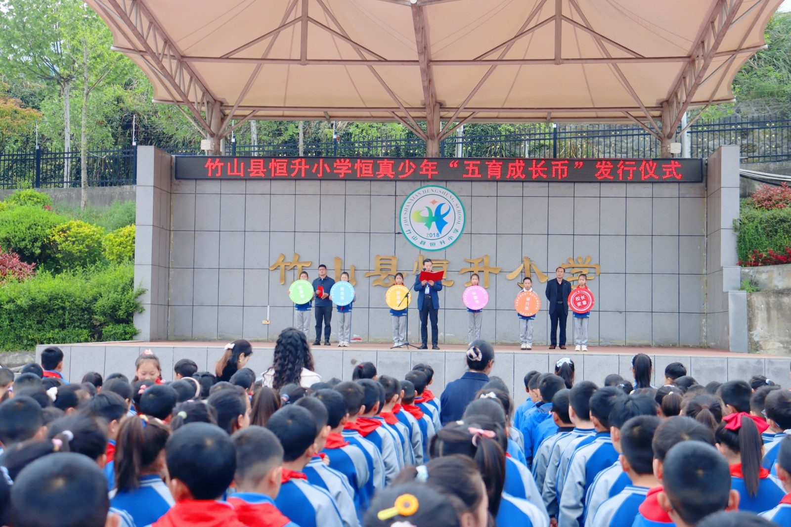 今日竹山網(wǎng)消息 4月8日,恒升小學(xué)舉行“恒真少年”五育成長(zhǎng)幣發(fā)行儀式,全體師生共同參與這一校園特色激勵(lì)體系啟動(dòng)活動(dòng)。