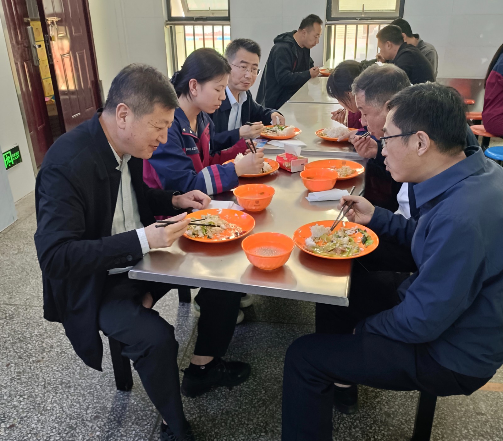 督查過程中,一行人員嚴格遵循食堂就餐流程,有序取餐、文明就餐,主動與學生們同桌共食、親切交流。他們一邊用餐,一邊細致詢問學生對食堂飯菜的口味、分量、種類及價格的滿意度,耐心傾聽學生在就餐過程中的訴求和意見建議,細致了解學生日常就餐體驗,同時叮囑學生珍惜糧食、文明用餐。通過與學生面對面交流,一行人員直觀掌握了食堂服務質量和學生就餐情況,把對學生的關懷融入細微之處。