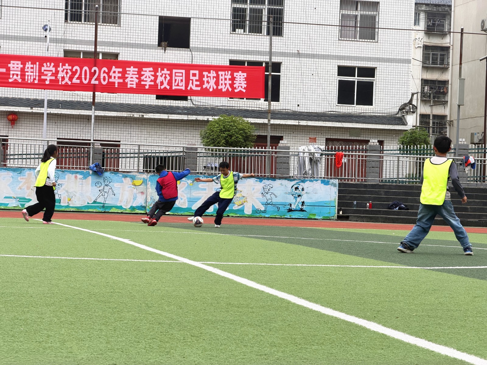 同時(shí),該校搭建完善的三級(jí)賽事體系,打破年級(jí)與班級(jí)壁壘,組建班級(jí)、年級(jí)、校級(jí)足球隊(duì),形成“周周有賽事、班班有隊(duì)伍、人人能參與”的競(jìng)賽格局。本次春季聯(lián)賽不僅是全校足球競(jìng)技水平的集中展示,更是以賽促訓(xùn)、以賽促學(xué)的生動(dòng)實(shí)踐。賽場(chǎng)上,小球員們配合默契、奮勇拼搏,帶球突破、精準(zhǔn)傳球、大力射門(mén),每一個(gè)動(dòng)作都盡顯少年風(fēng)采;賽場(chǎng)下,師生們吶喊助威、熱情高漲,為青春的熱血與堅(jiān)持喝彩。