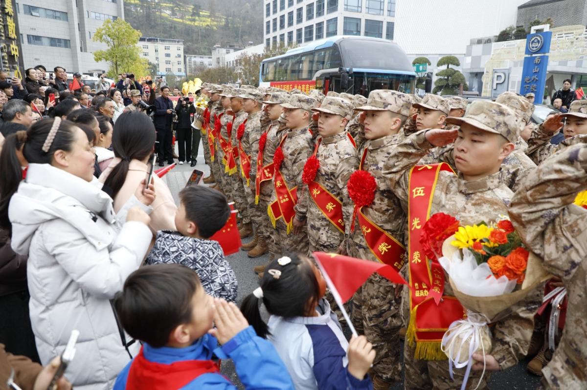軍歌嘹亮,戰(zhàn)鼓催征?,F(xiàn)場鑼鼓喧天、熱鬧非凡,新兵家屬和群眾自發(fā)來到街頭,手捧鮮花、夾道歡送。隨著出發(fā)指令的下達,新兵們揮別親人、揮別家鄉(xiāng),有序登上軍車。車窗內(nèi)外,不舍的目光交織在一起,車輛緩緩駛離女媧廣場,帶著家鄉(xiāng)人民的祝福和期望,向著軍營、向著保家衛(wèi)國的神圣使命奮勇前行。(杜登艷 王觀瀾 儲成群 明 康)